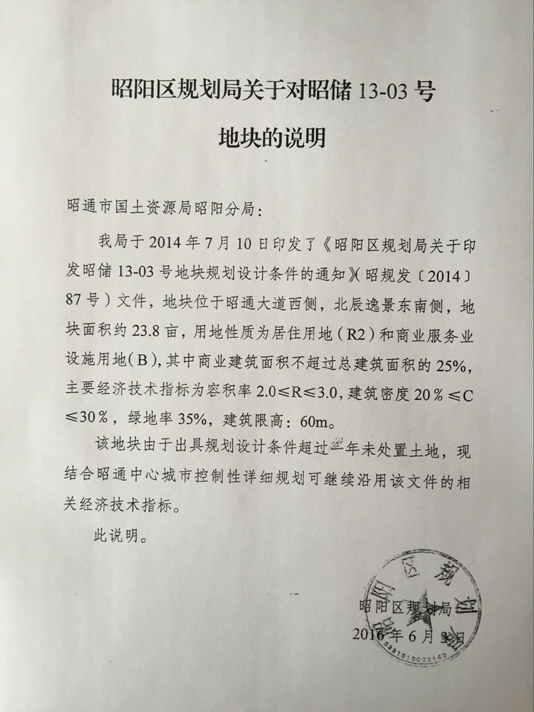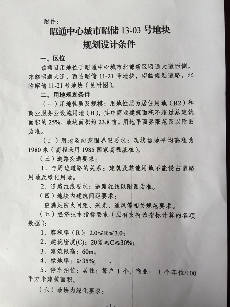 昭通中心城市13-03號(hào)國有建設(shè)用地使用權(quán)規(guī)劃條件