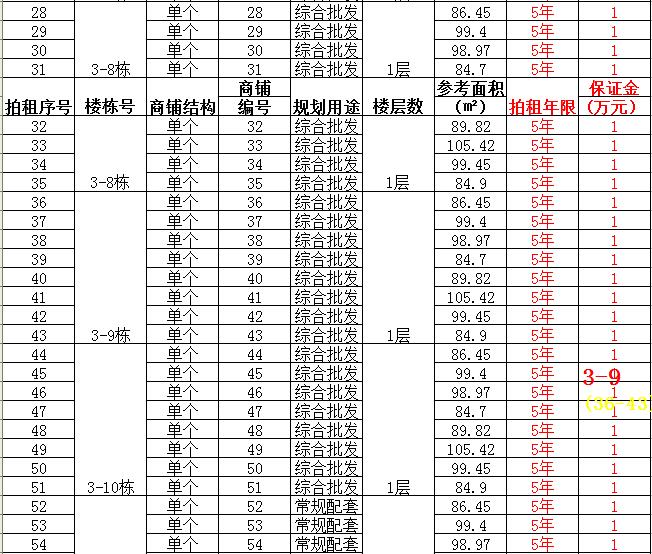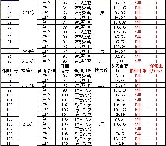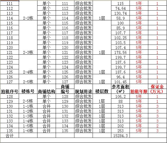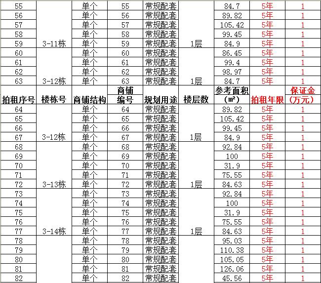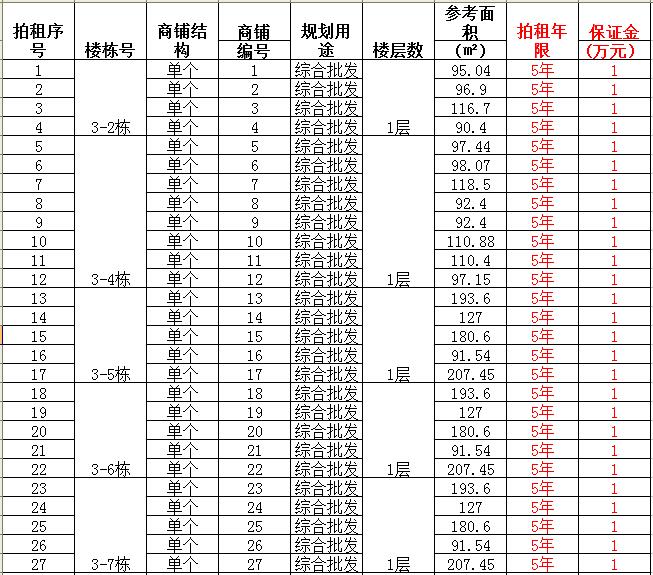 (二)拍租二個及其以上合并為一個商鋪6間,使用期5年,每間商鋪預交競租保證金2萬元至3萬元不等,詳見商鋪簡介(欲競租多間商鋪,保證金類推)。