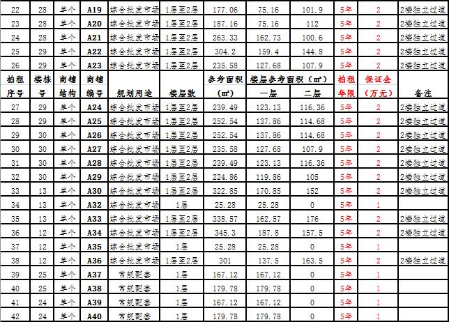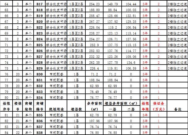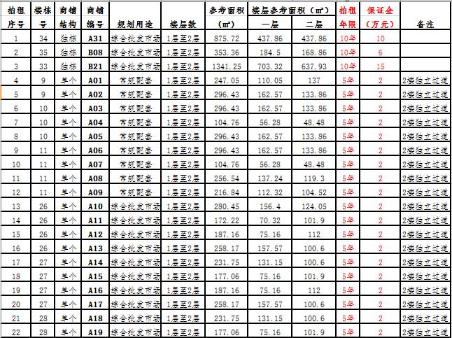 (一)拍租一層至二層獨棟商鋪3棟,使用期10年,每棟商鋪預交競租保證金6萬元至15萬元不等, 詳見商鋪簡介(欲競租多棟商鋪,保證金類推);