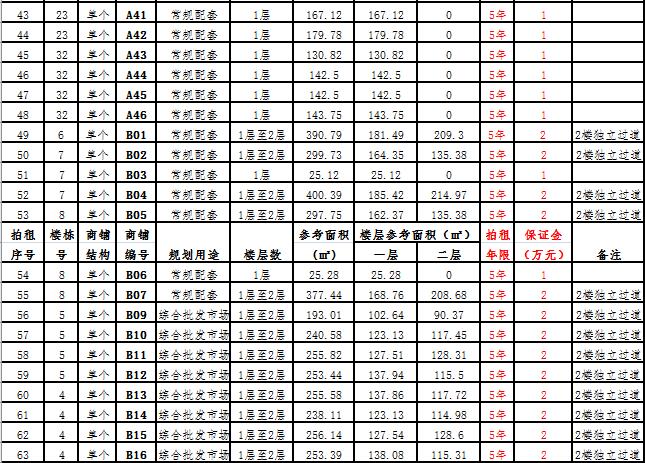 (二)拍租一層至二層合并為一個商鋪58 間,使用期5年,每間商鋪預交競租保證金2萬元, 詳見商鋪簡介(欲競租多間商鋪,保證金類推)。
