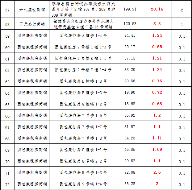 (三)拍租鎮(zhèn)雄縣城市運營管理有限公司國有門面3年期使用權(quán),詳見下表:
