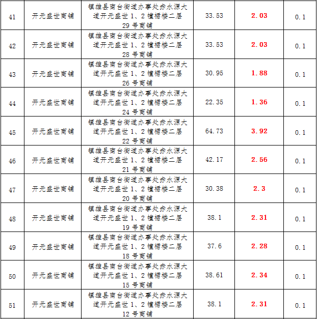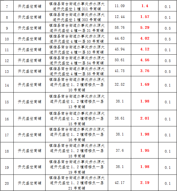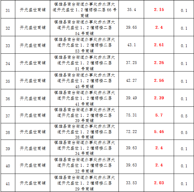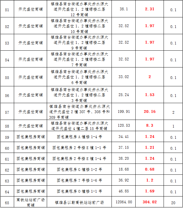 (一)拍租鎮(zhèn)雄發(fā)展集團有限公司國有門面3年期使用權,詳見下表: